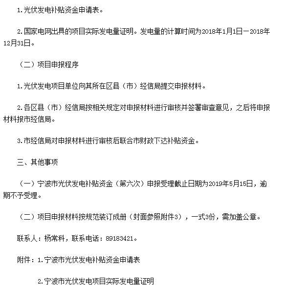寧波市光伏發電補貼資金 (第六次)申報工作的通知