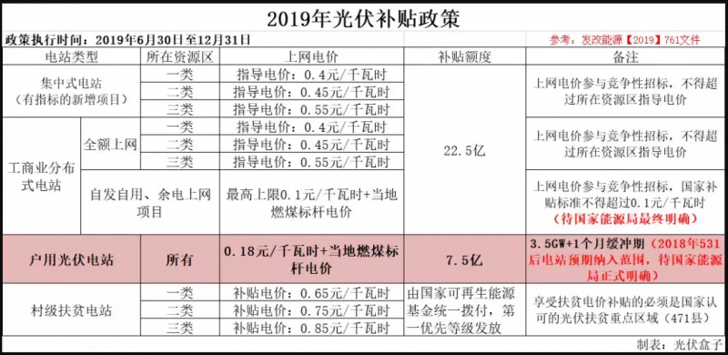 1、2019年1月1日至6月30日之間并網的戶用光伏項目,每月只有燃煤標桿電價,從7月開始可以拿到0.18元/kWh的國家補貼,補貼20年。