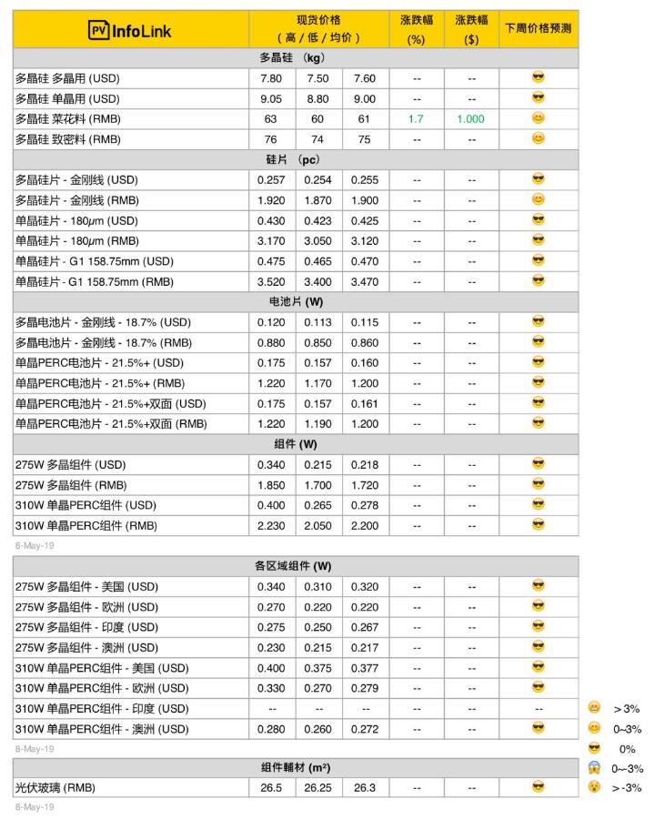 本周光伏供應鏈價格(5月9日)