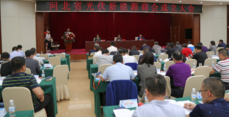 河北省光伏新能源商會第一次會員大會暨成立大會,省工商聯、省民政廳、全國工商聯新能源商會、省相關市新能源處(科)、省內(外)商(協)會,省工商聯直屬商會代表,行業主流媒體:河北經濟日報、索比光伏網、國際能源網、華夏能源網、北極星、光伏產業網、共享能源、歐樂文化等媒體機構、全體會員單位代表(108家)共計300余人出席予以見證和祝賀。另外,河北省誠信文化促進會、河北省農業產業協會、綠色清潔能源商業聯盟河北商會、廣東省太陽能協會、上海市太陽能學會、無錫新能源商會、重慶市可再生能源學會、陜西省太陽能行業協會、內蒙古太陽能行業協會、江蘇省光伏產業協會、江蘇省可再生能源行業協會、云南省綠色能源行業協會、湖南省可再生能源學會、湖北省太陽能空氣能行業協會、浙江省太陽能光伏行業協會、山東省太陽能行業協會、山西省太陽能協會、安徽省新能源協會、寧夏太陽能能源協會、河南省產業發展研究會新能源專業委員會、河北省江蘇商會、世紀新能源網,海南省太陽能應用行業協會等23個商(協)會及新聞媒體發來賀信對商會成立表示祝賀。衡水市、滄州市、邯鄲市、邢臺市能源部門領導,河南省產業發展研究會新能源專業委員會、山東省太陽能行業協會、山西省太陽能協會領導出席會議。