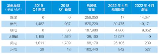 場的裝機容量增長了2.17GW,總裝機容量超過136GW。同期天然氣發電新增裝機1.48GW。