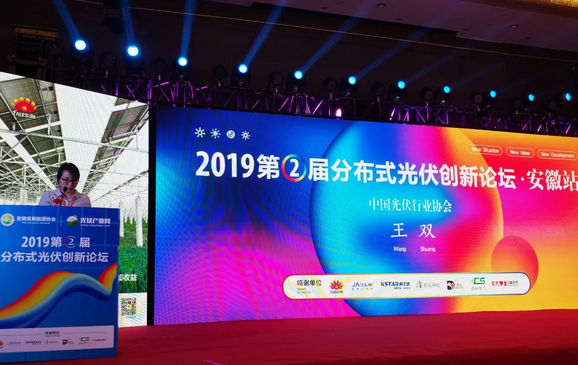 在致辭中,王雙簡要介紹了我國分布式光伏的發展歷程、發展現狀以及發展形勢。自2000年我建成了國內第一個屋頂并網系統至今,我國分布式光伏發展經歷了萌芽期,規模發展期和加速期。2018年,我國分布式光伏新增裝機量20.96GW,同比增長8%,在新增裝機里占比超過47%。2019年第一季度,全國新增裝機5.2GW,除扶貧外,有相當規模均為工商業分布式無補貼項目。縱觀我國分布式光伏政策和市場的發展演變歷程,除了政策促進作用之外,最主要的動力來源于技術創新升級帶動下的光伏系統成本的下降。