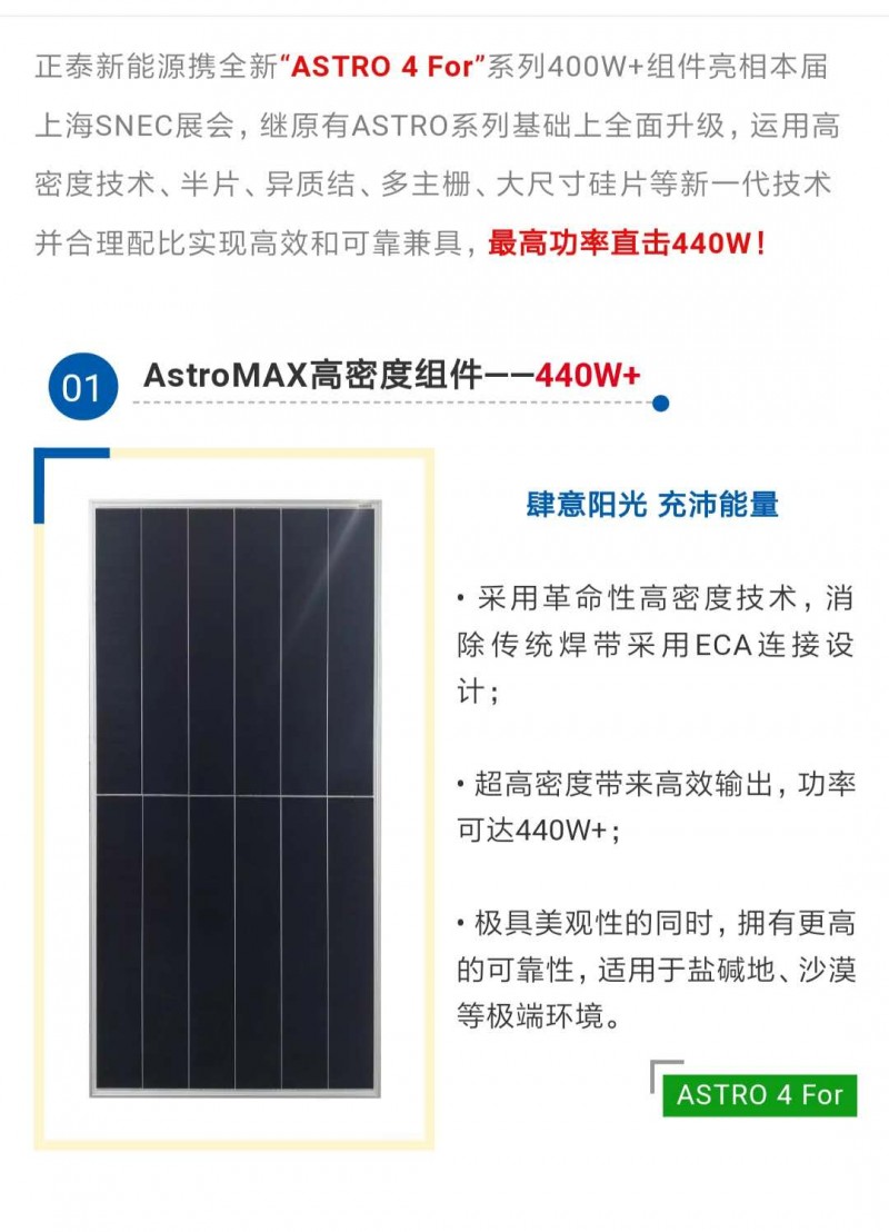 正泰新能源將攜"ASTRO 4 For"系列400W+組件亮相上海SNEC太陽能光伏展