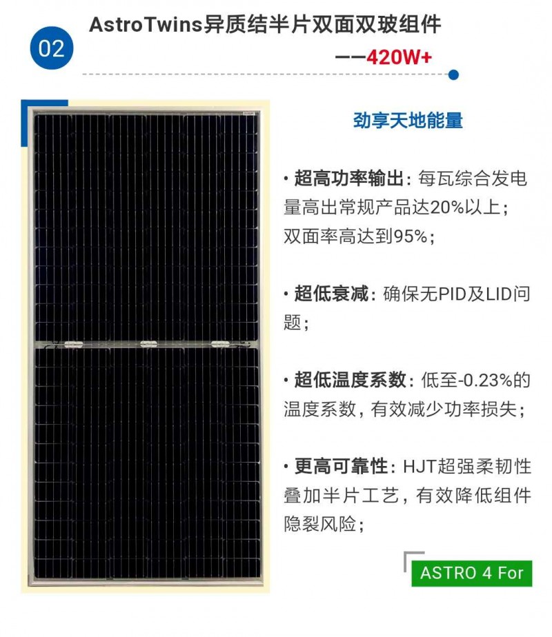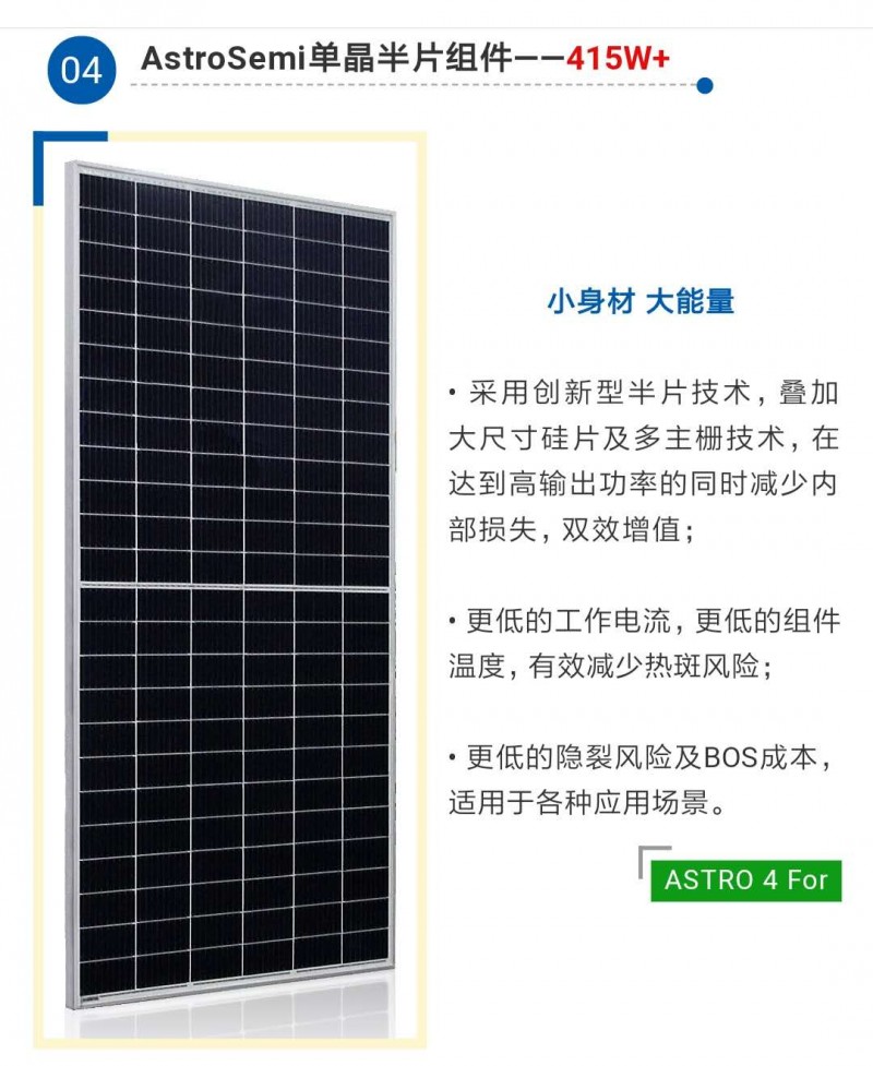 ,現場還將展出有更多半片組件、全黑單晶組件、智能組件以及常規組件,滿足不同場景需求。