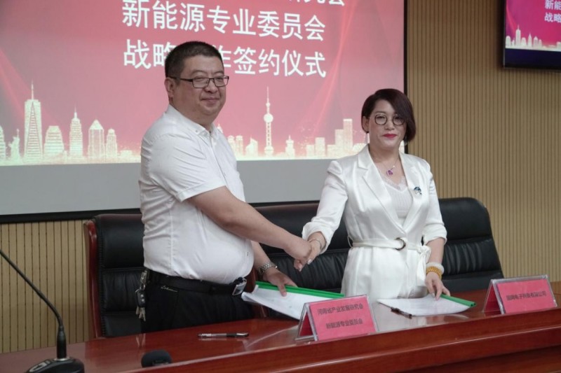 國(guó)網(wǎng)電子商務(wù)有限公司公司光伏事業(yè)部業(yè)務(wù)運(yùn)營(yíng)處處長(zhǎng)王浩然(右)與河南省產(chǎn)業(yè)發(fā)展研究會(huì)副會(huì)長(zhǎng)、新能源專業(yè)委員會(huì)秘書長(zhǎng)姚峰(左)正式簽約。