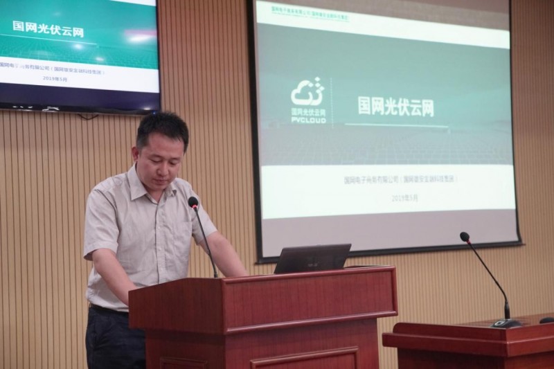 國(guó)網(wǎng)電子商務(wù)有限公司光伏事業(yè)部業(yè)務(wù)經(jīng)理郭少剛講解光伏云的特點(diǎn)與優(yōu)勢(shì)。