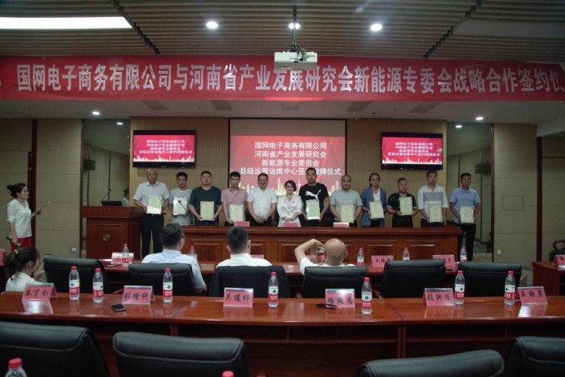簽約儀式的最后,王浩然處長(zhǎng)和姚峰副會(huì)長(zhǎng)分別與漯河市城區(qū)、洛陽(yáng)市汝陽(yáng)縣、開封市祥符區(qū)、開封市尉氏縣、開封市杞縣、南陽(yáng)市西峽縣、南陽(yáng)市桐柏縣、商丘市民權(quán)縣、焦作市武陟縣、駐馬店市泌陽(yáng)縣、安陽(yáng)市滑縣、濟(jì)源市城區(qū),河南省首批共計(jì)12個(gè)縣級(jí)負(fù)責(zé)人簽訂協(xié)議,授權(quán)成立國(guó)網(wǎng)運(yùn)營(yíng)運(yùn)維中心。成立的運(yùn)營(yíng)運(yùn)維中心將在國(guó)網(wǎng)電子商務(wù)和新能源專業(yè)委員會(huì)的共同管理下,服務(wù)當(dāng)?shù)匾呀ǔ傻墓夥娬荆瑫r(shí)開發(fā)當(dāng)?shù)氐男履茉词袌?chǎng)。