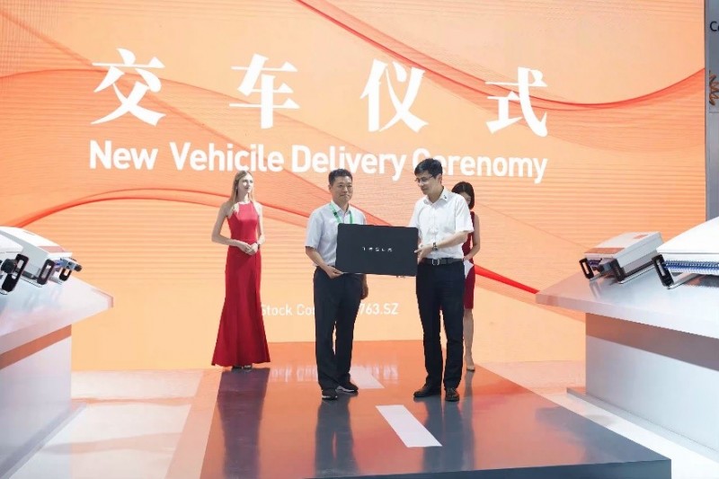 6月4日上午11點,錦浪科技于展位區舉行了第五代5G逆變器技術平臺發布會及特斯拉交車儀式。