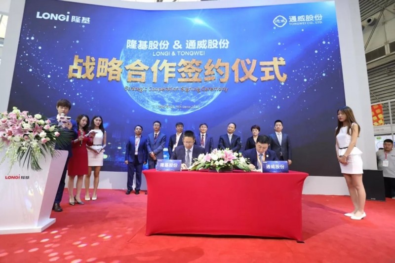 在隆基集團(tuán)董事長(zhǎng)鐘寶申和通威集團(tuán)董事局主席劉漢元等領(lǐng)導(dǎo)的共同見證下,雙方代表周義成和謝毅在親切友好的氛圍里簽署了《隆基綠能科技股份有限公司與通威股份有限公司關(guān)于光伏產(chǎn)業(yè)戰(zhàn)略合作協(xié)議》(以下簡(jiǎn)稱《協(xié)議》)。