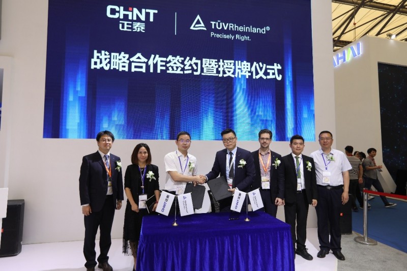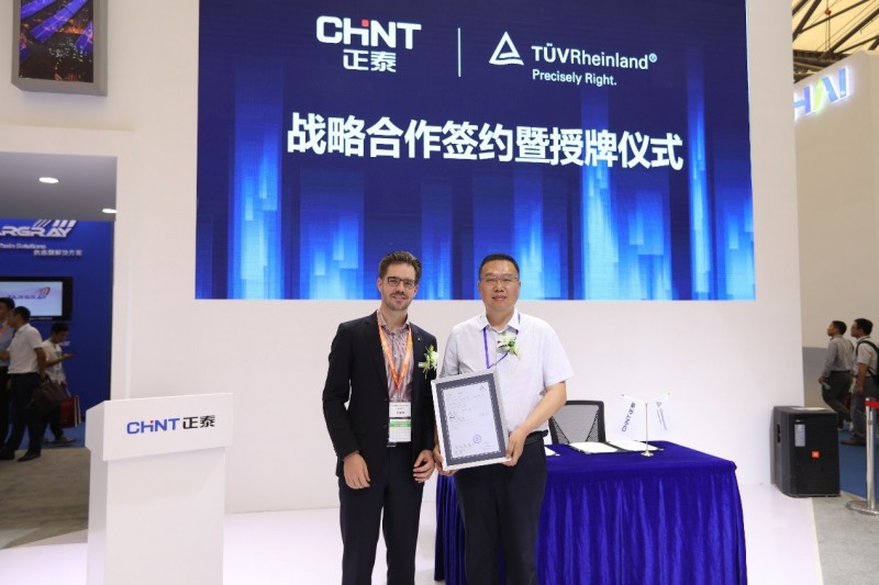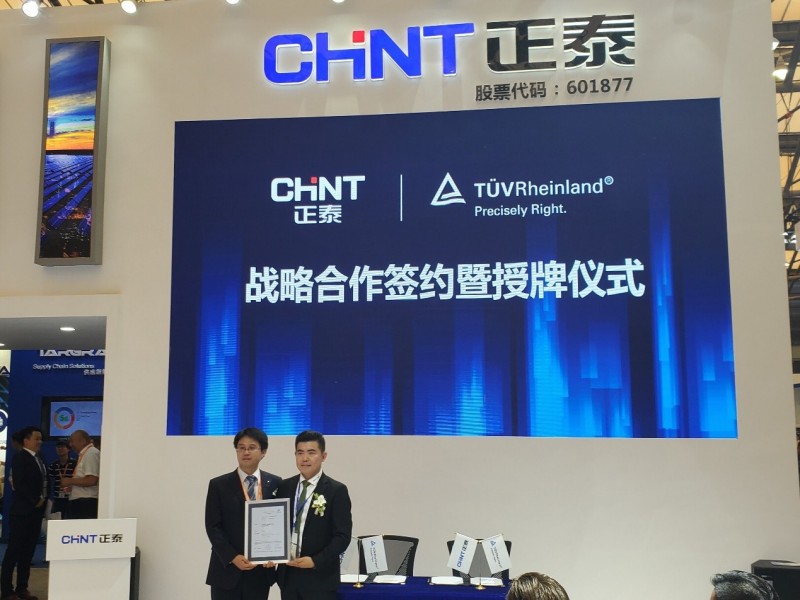 正泰新能源副總裁金建波與TÜV萊茵副總裁鄒馳騁進行簽約儀式