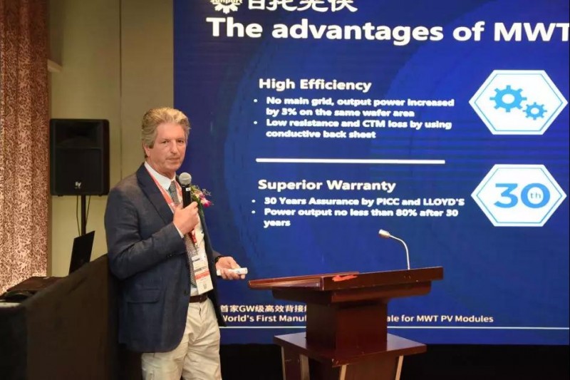 在發布會現場,日托光伏發布了基于技術、產品、市場層面的最新動態。澳大利亞新南威爾士大學教授、日托光伏首席科學家馬丁·格林教授為與會來賓解讀了基于技術革新層面的MWT+,從高效MWT技術的強大優勢、獨有的技術路線以及未來MWT+技術方面的各種可行性進行了細致全面的解讀,使與會嘉賓不僅對日托光伏高效MWT技術有了更全面的了解,更對日托光伏技術為先、堅持創新的企業發展理念有了更深刻的感受。