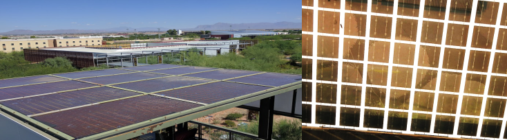 在國外的雙玻組件也問題頻出。在美國亞利桑那州,安裝10年的雙玻組件出現發黃變色、脫層、碎裂等情況。情況嚴重的組件正面發黃發暗和變色,背面大面積脫層,部分背板玻璃爆裂。