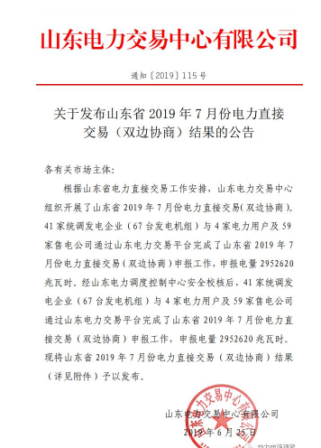 雙邊協商交易結果:經安全校核后,確認41家統調發電企業(67臺發電機組)與4家電力用戶及59家售電公司達成交易電量2952620兆瓦時。