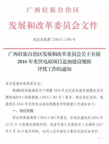 按照《國(guó)家能源局關(guān)于調(diào)整2016年光伏電站建設(shè)規(guī)模有關(guān)問(wèn)題的通知》(國(guó)能新能〔2016〕383號(hào))要求,結(jié)合我省普通光伏電站建設(shè)情況,經(jīng)省能源局局長(zhǎng)辦公會(huì)研究,決定開(kāi)展2016年度光伏電站追加規(guī)模申報(bào)工作,本次擬向國(guó)家申報(bào)追加規(guī)模指標(biāo)100萬(wàn)千瓦,通過(guò)競(jìng)爭(zhēng)方式分配。現(xiàn)就有關(guān)事項(xiàng)通知如下: