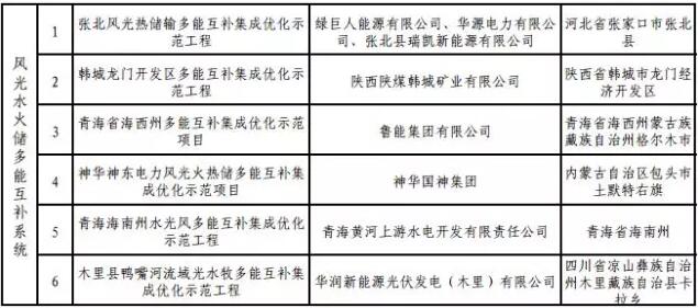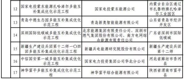 附件:首批多能互補集成優(yōu)化示范工程入選項目名單