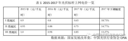 日前,國家發展改革委發布了《關于調整光伏發電陸上風電標桿上網電價的通知》,自2017年1月1日之后,對我國三類電價區的光伏發電標桿電價再度進行調整,降低后的電價水平分別為I類地區0.65元/千瓦時,II類地區0.75元/千瓦時,III類地區0.85元/千瓦時,比2016年電價每千瓦時下調0.15元、0.13元、0.13元,分布式光伏發電補貼標準不作調整,仍為0.42元/千瓦時。《通知》中明確,今后光伏標桿上網電價根據成本變化,暫定每年調整一次。