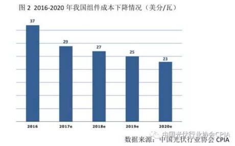 近年來,我國光伏產業進步顯著,光伏組件制造、光電轉換效率均已達到世界先進水平。2016年底,單晶和多晶電池產業化效率分別達到了19.8%和18.5%,較2015年同期提高了0.3個百分點以上,并正在向21%和19%推進。我國多晶硅生產成本降至70元/公斤以下,組件生產成本降至2.5元/瓦左右,光伏系統初投資降至7.3元/瓦以下,相較于2015年均有不同程度的下降,未來隨著技術的進步仍有一定下降空間。