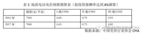根據國家能源局2016年6月出臺的可再生能源全額保障小時數文件,取I類區1500、II類區1300、III類區1100小時,在內部收益率為8%的情況下的電價進行測算,可以得出:在制造端盈虧平衡情況下,2016年三類資源區電價應分別達到0.69元、0.79元和0.95元;在制造端有3%盈利情況下,對于地面電站要保持8%的投資收益率,三類資源區電價應分別達到0.70元、0.80元和0.96元,以上測算未考慮棄光限電、補貼拖欠等因素。而到2017年,投資成本下降至7元/瓦后,三類地區發電成本可分別下降至0.65、0.75和0.85元。