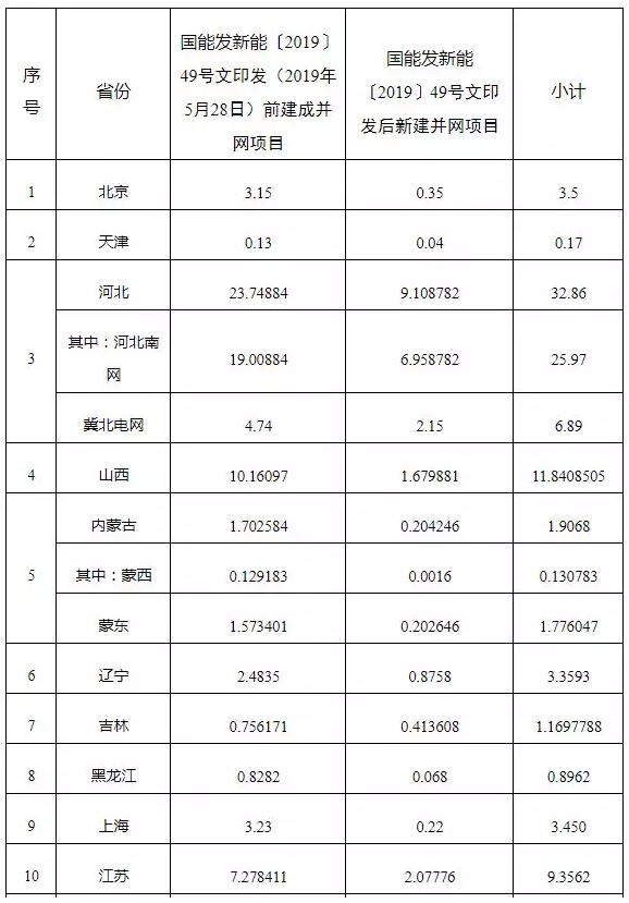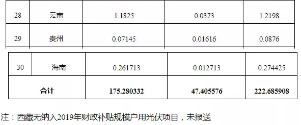 附表:納入2019年國家財政補貼規模戶用光伏項目裝機容量統計表(截至2019年6月30日)