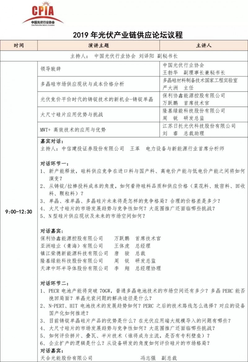 核心提示:2019年光伏產業鏈供應論壇最新日程公布.
