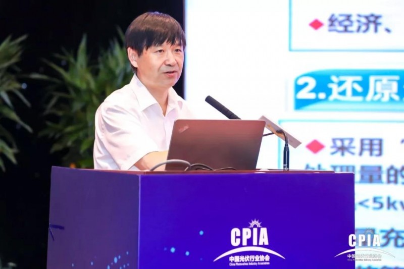 多晶硅材料制備技術國家工程實驗室嚴大洲主任作多晶硅市場供應現狀與成本價格分析的報告。