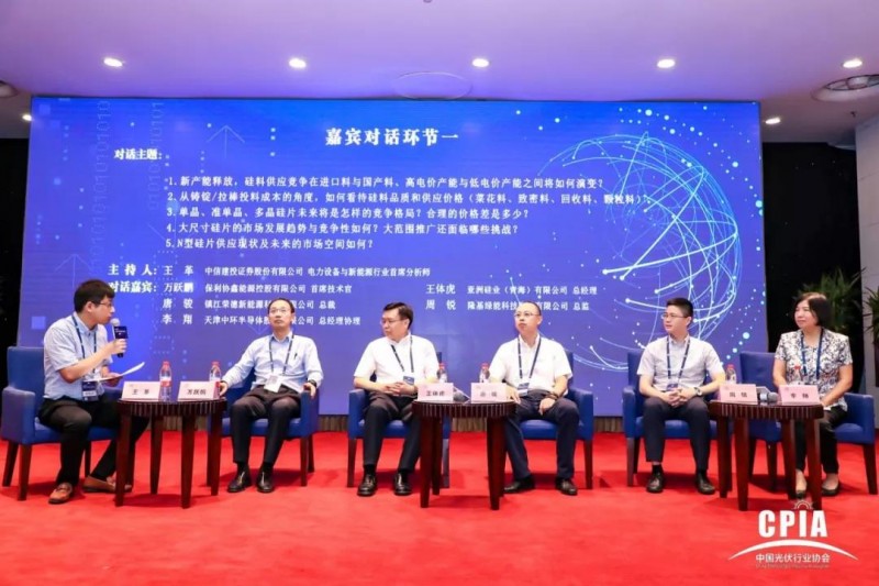 各位嘉賓分別就產業鏈上游的新產能釋放;硅料供應競爭在進口料與國產料、高電價產能與低電價產能之間的演變;從鑄錠/拉棒投料成本的角度分析硅料品質和供應價格;未來競爭格局和合理的價差是多少?大尺寸硅片的市場發展趨勢和大范圍推廣面臨的挑戰等方面發表了各自的觀點。