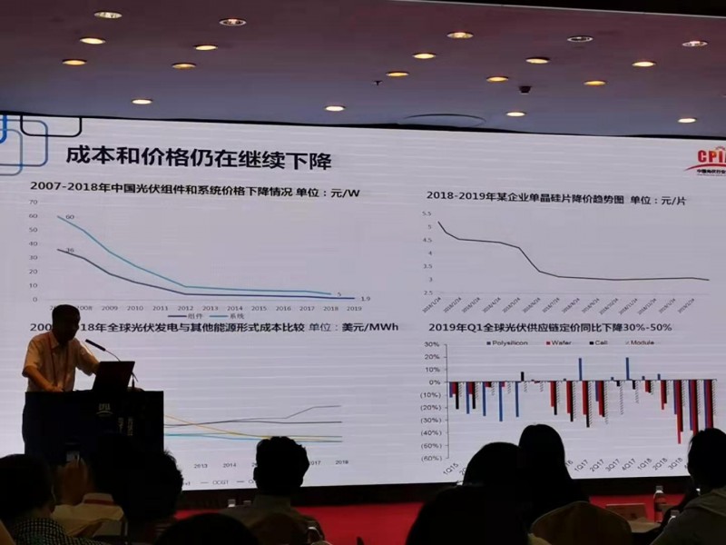 關于中國光伏市場情況,王勃華指出,2019年上半年我國光伏新增裝機不足12GW,降幅超50%,集中式電站新增裝機月6.8GW,同比下降43.3%,分布式光伏新增裝機約4.6GW,同比下降61.7%。同時,競價加速了補貼退坡的步伐。