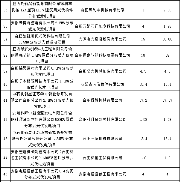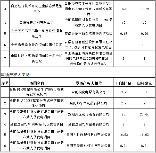 關于2018年度合肥市光伏產業扶持政策補貼資金兌現的公示