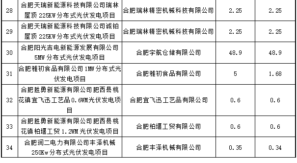 2018年度合肥市光伏產業扶持政策補貼項目匯總表.doc