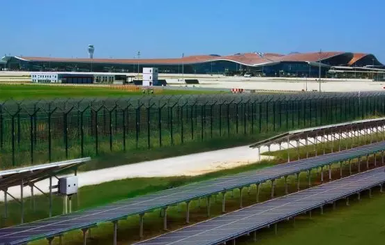 北京市發改委相關負責人早前表示,大興國際機場貫徹綠色建設理念,高效利用各種能源,作為全世界屈指可數的超大型航空綜合交通樞紐,其可再生能源總量將占機場年綜合能源消費總量10%以上,其中跑道周邊鋪設光伏系統,年均發電量約占機場總能源使用的1%。建成后的北京大興國際機場將是目前全國運用可再生能源比例最高的機場。