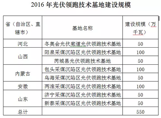 2016年國(guó)家能源局下達(dá)光伏領(lǐng)跑技術(shù)基地規(guī)模550萬千瓦,同時(shí)明確光伏領(lǐng)跑技術(shù)基地應(yīng)采取招標(biāo)、優(yōu)選等競(jìng)爭(zhēng)性比選方式配置項(xiàng)目,而且應(yīng)將電價(jià)作為主要競(jìng)爭(zhēng)條件。基地內(nèi)單個(gè)光伏電站項(xiàng)目的建設(shè)規(guī)模原則上應(yīng)在10萬千瓦以上。