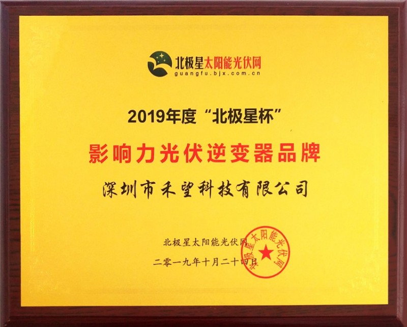 10月24日,禾望作為贊助單位應邀參加了北極星電力網承辦的2019光伏新時代論壇暨“北極星杯”光伏影響力品牌頒獎典禮。禾望憑借可靠的產品質量和豐富的項目應用經驗,在眾多光伏企業中脫穎而出,榮獲“影響力優秀光伏創新企業”及“影響力光伏逆變器品牌”兩項殊榮,這是對禾望出眾的實力和產品的又一次充分肯定。
