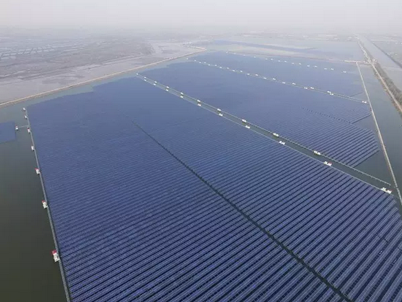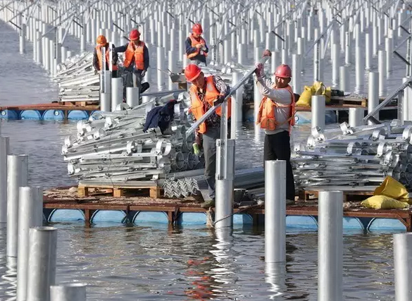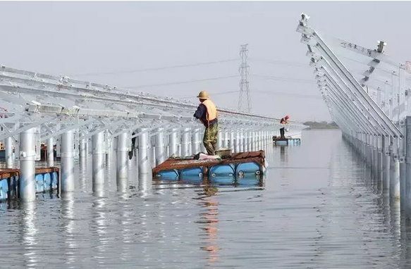 這項從2016年6月底進場施工的浩瀚工程進展“神速”。不到半年,一個“上可發電、下可養魚”的大型漁光互補光伏發電項目已基本完工。