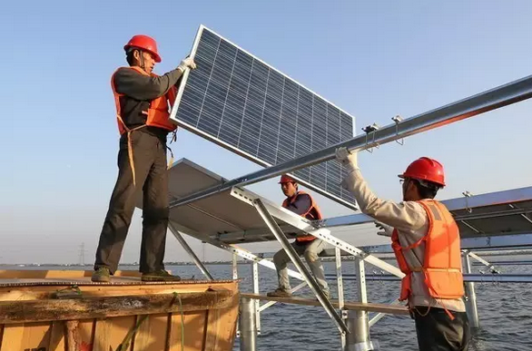 此時,這項浩翰的漁光互補光伏發電項目建設工程已經建成。放眼遠眺,周巷水庫、長河水庫波光粼粼的水面上,藍色光伏板已排起了龐大陣列。不時,有白鷺翩躚飛舞的身影掠過,有的還歇下腳步,站在上面新奇地觀望著眼前的一切。