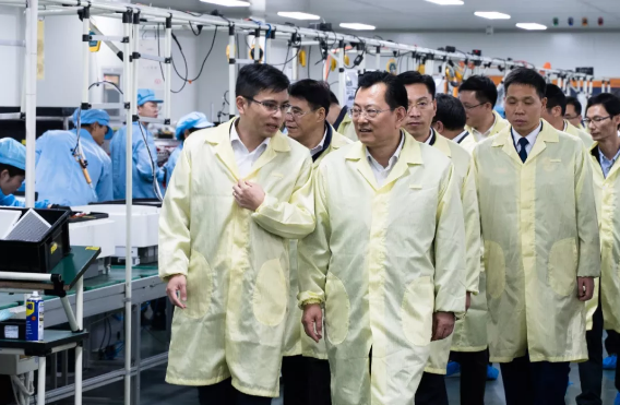 裘東耀一行實地了解錦浪光伏逆變器的生產制造等情況,認真聽取企業對加快行業升級、推動光伏產品高質量發展的意見建議,并就行業發展、政策變化等問題和有關方面進行了深入討論。