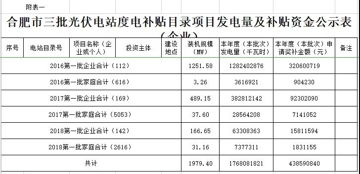 根據《合肥市人民政府關于促進光伏產業持續健康較快發展的若干意見》(合政〔2016〕93號)、《合肥市人民政府關于進一步促進光伏產業持續健康發展的意見》(合政〔2018〕101號)、《關于印發<合肥市進一步促進光伏產業持續健康發展的意見實施細則>的通知》(合經信電子〔2018〕553號)、《關于合肥市光伏電站度電補貼資金項目實行目錄管理的通知》(合發改能源〔2017〕320號)等有關文件要求,市發改委牽頭,對列入第一批、第二批和第三批光伏電站度電補貼目錄的項目發電量及申請補貼資金進行了審核,現將審核結果予以公示,公示時間2019年11月4日至2019年11月8日。