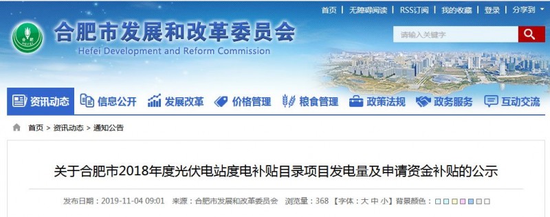 根據《合肥市人民政府關于促進光伏產業持續健康較快發展的若干意見》(合政〔2016〕93號)、《合肥市人民政府關于進一步促進光伏產業持續健康發展的意見》(合政〔2018〕101號)、《關于印發<合肥市進一步促進光伏產業持續健康發展的意見實施細則>的通知》(合經信電子〔2018〕553號)、《關于合肥市光伏電站度電補貼資金項目實行目錄管理的通知》(合發改能源〔2017〕320號)等有關文件要求,市發改委牽頭,對列入第一批、第二批和第三批光伏電站度電補貼目錄的項目發電量及申請補貼資金進行了審核,現將審核結果予以公示,公示時間2019年11月4日至2019年11月8日。