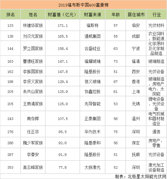 光伏領域多家企業上榜!2019年福布斯400中國富豪榜新鮮出爐