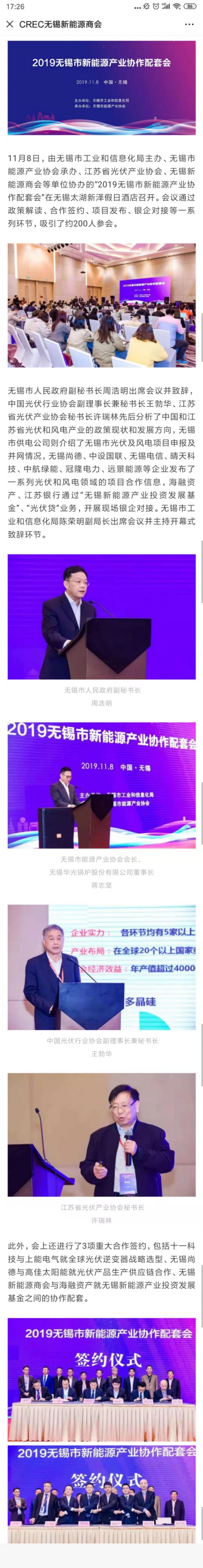 核心提示:無錫市召開新能源產業協作配套會 三大項目集中簽約