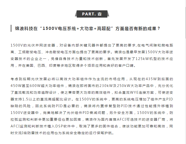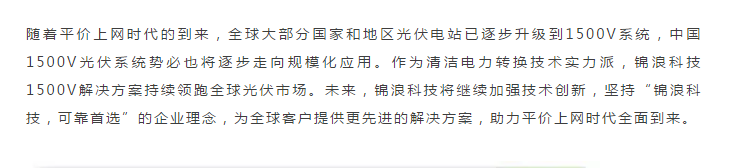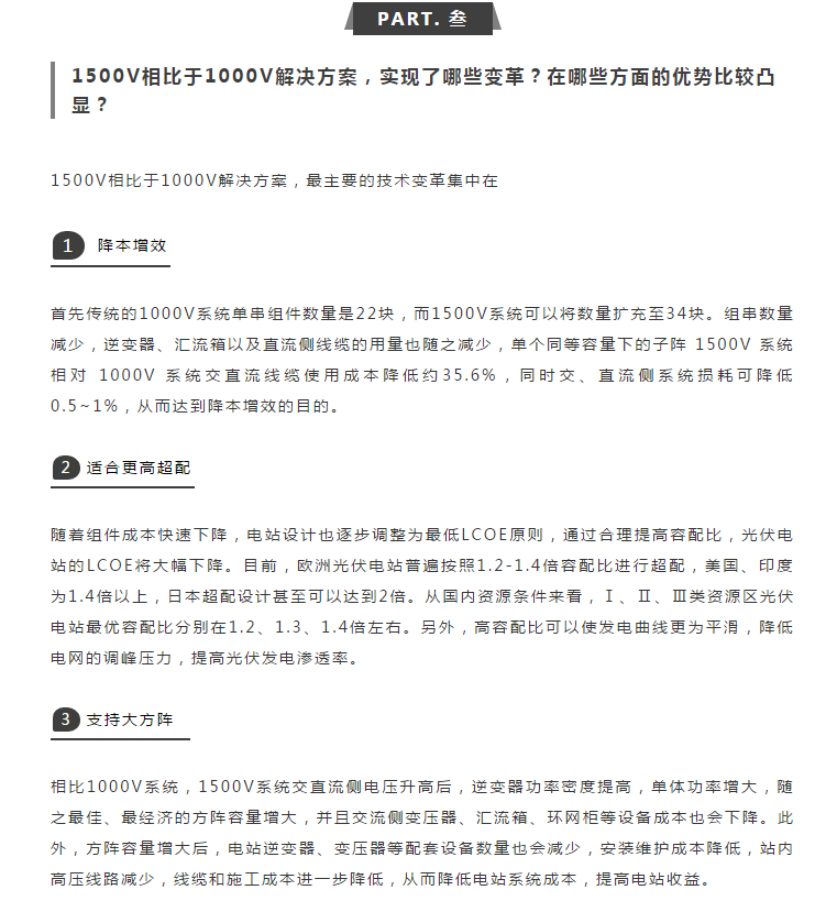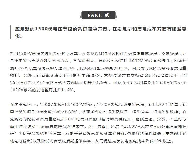 “1500V電壓系統+大功率+高超配”先進光伏系統解決方案,度電成本降低10%以上