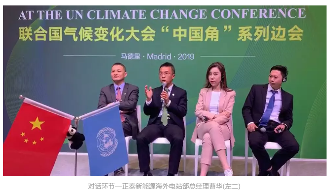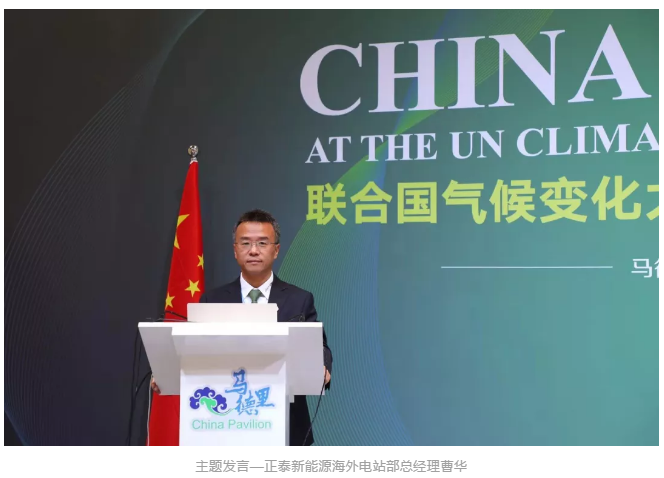 曹華通過國內外實際案例展示正泰新能源在節能減排、綠色發展、推動應對氣候變化中的實踐與經驗,向世界亮出了正泰“成績單”。正泰將源源不斷向世界輸出低碳、環保的綠色能量,為改善生態環境、應對氣候變化獻策獻力。