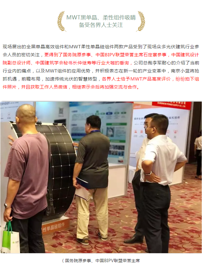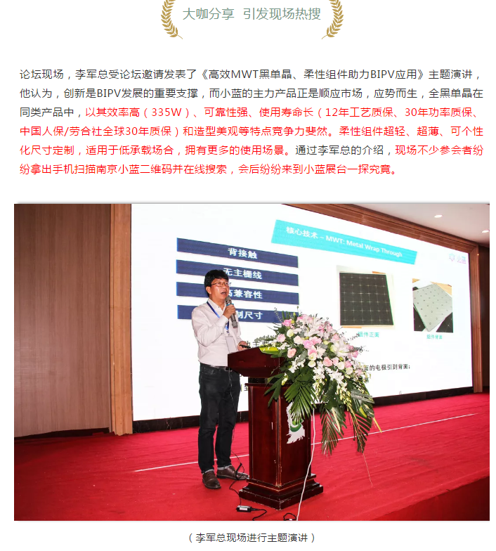 南京小藍重磅推出全黑單晶、柔性組件,MWT助力BIPV創(chuàng)新發(fā)展論壇