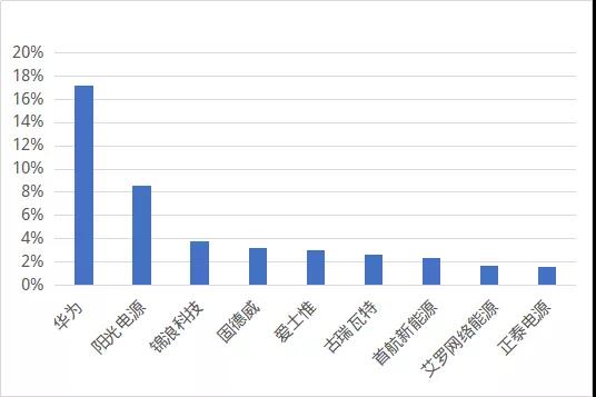 2019年光伏逆變器出口金額占比前九家企業