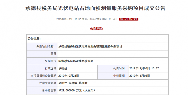 近日,從政府采購網(wǎng)站上了解到,某地稅務局已通過公開招標手段完成當?shù)毓夥娬菊嫉孛娣e的測量,中標價21萬。