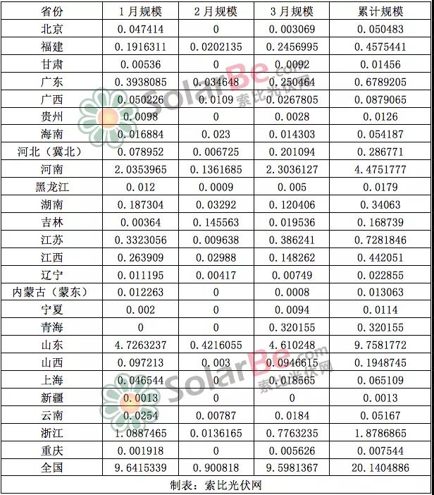統計數據顯示,1-3月新增的戶用光伏項目分別為6350戶、593戶和5874戶,裝機容量分別為96.4MW、9MW和95.98MW。顯然,經歷過2月份的低迷后,戶用光伏領域在3月份已經開始逐漸恢復。索比光伏網預計,4月政策明確、市場形勢好轉后,戶用光伏將呈現快速恢復趨勢,6GW國家補貼指標將得到充分利用,全年戶用光伏新增裝機規模有可能達到7GW。