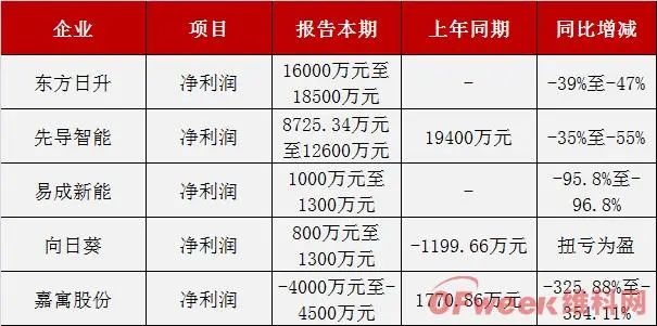 光伏設備端,除了晶盛機電(19.400,-0.58,-2.90%)外,大部分企業業績出現了虧損或不同程度的下滑。