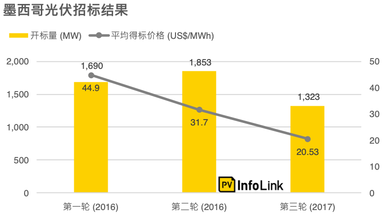 墨西哥在能源轉(zhuǎn)型法出臺(tái)后開始大力推動(dòng)再生能源發(fā)展,其中光伏是重點(diǎn)的發(fā)展項(xiàng)目之一。墨西哥政府借由競(jìng)標(biāo)的方式推動(dòng)市場(chǎng)需求,在當(dāng)?shù)毓?yīng)鏈未臻完善的情況下,也讓海外業(yè)者有了新的開發(fā)空間爭(zhēng)相進(jìn)入墨西哥獲取市占,截至目前為止共舉辦了三輪的競(jìng)標(biāo),且多半已在2020年前完工并網(wǎng)。而第四輪的競(jìng)標(biāo)項(xiàng)目已取消,未來是否會(huì)重啟招標(biāo)仍尚待觀察評(píng)估,目前大型項(xiàng)目已開始轉(zhuǎn)往簽訂私人PPA的方式進(jìn)行,其成效尚待時(shí)間檢驗(yàn)。