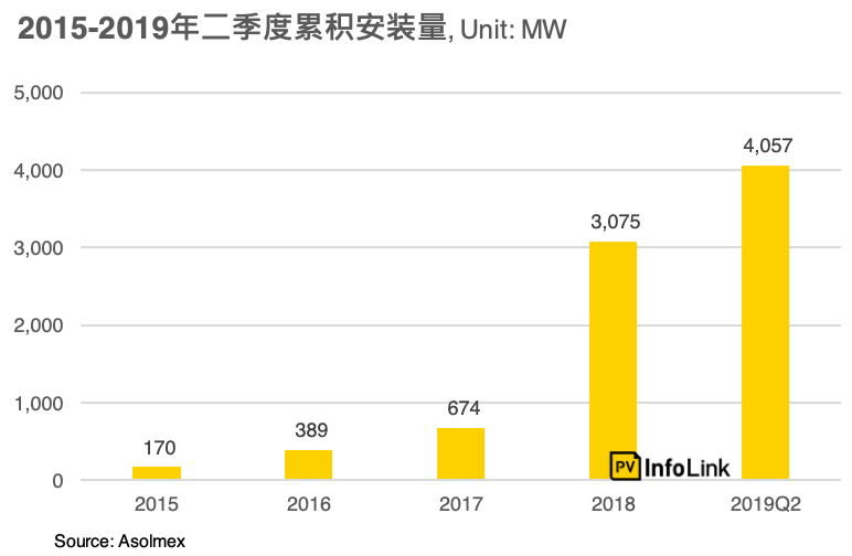 截至2019年二季度,墨西哥的累積安裝量已突破4GW,這些項(xiàng)目多半是競(jìng)價(jià)以及分布式項(xiàng)目所構(gòu)成,在第四輪的競(jìng)標(biāo)取消之下,當(dāng)?shù)氐拇笮晚?xiàng)目需求將轉(zhuǎn)往私人PPA的方向發(fā)展,具體成效仍尚待時(shí)間觀察。