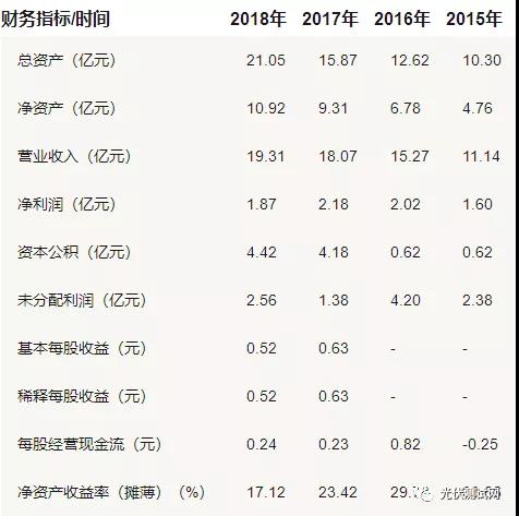 賽伍財務狀況良好,2015-2018年營收和凈利潤均呈現(xiàn)持續(xù)增長。2018年,賽伍總資產(chǎn)21億元,營業(yè)收入近20億元,凈利潤近2億元。