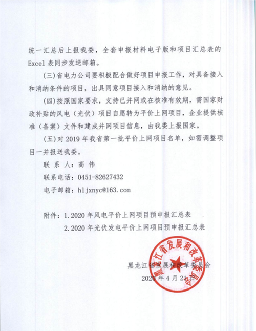 4月21日,黑龍江發改委印發《關于預申報2020年度風電、光伏發電平價上網項目的通知》,就2020年風、光平價項目申報的有關注意事項指出相關要求。